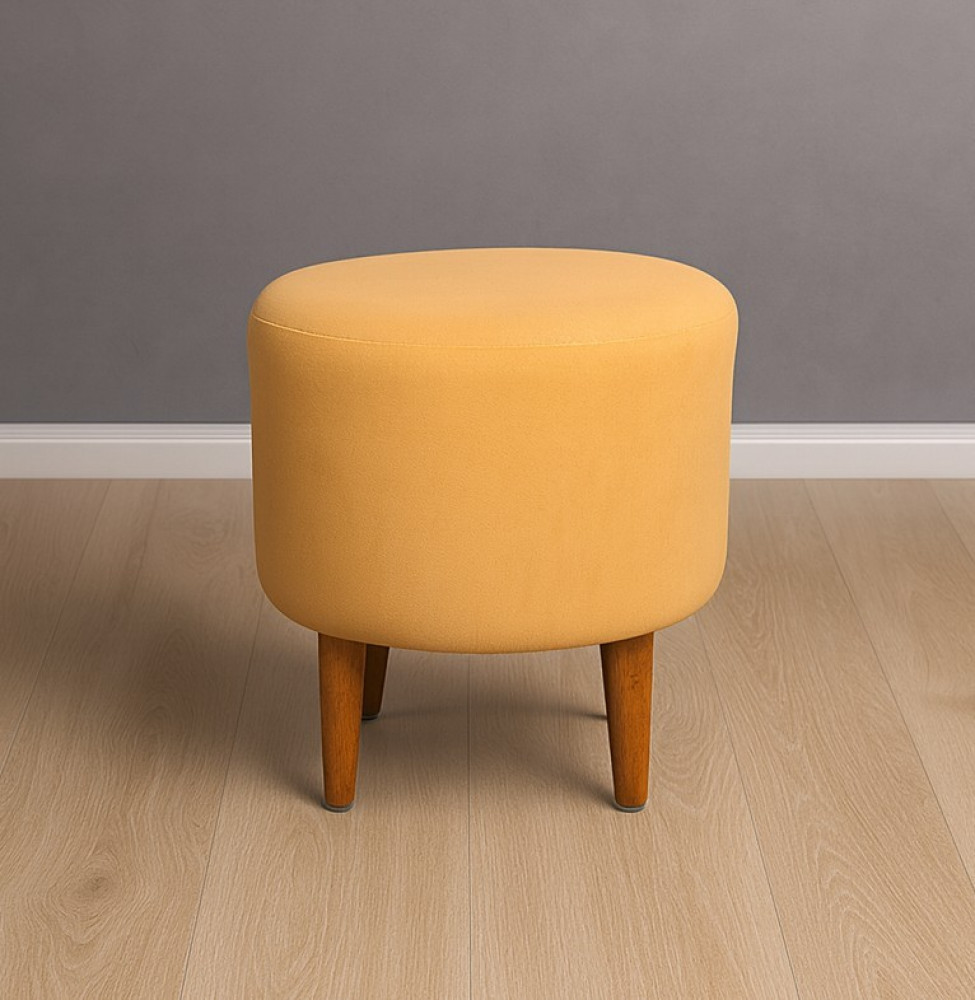 Canary Pouffe" – This small and cute pouffe is designed to elevate your relaxation experience as a footstool or additional seating. Its plush cushioning provides optimum support, while the charming teak legs add a touch of elegance to any space. The Canary Pouffe is not only functional but also adds a delightful pop of color with its vibrant yellow upholstery. Indulge in its softness and let this versatile pouffe become your go-to companion for moments of relaxation and leisure.