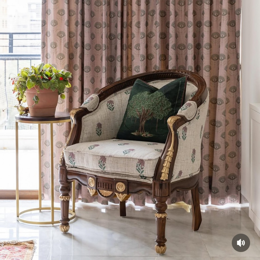 With its hand-carved wooden frame, floral upholstery, and poised silhouette, the Gulzar Chair brings poetry to every corner it sits in.Perfect as an accent piece or a statement by itself — it’s a nod to timeless craft and effortless charm.