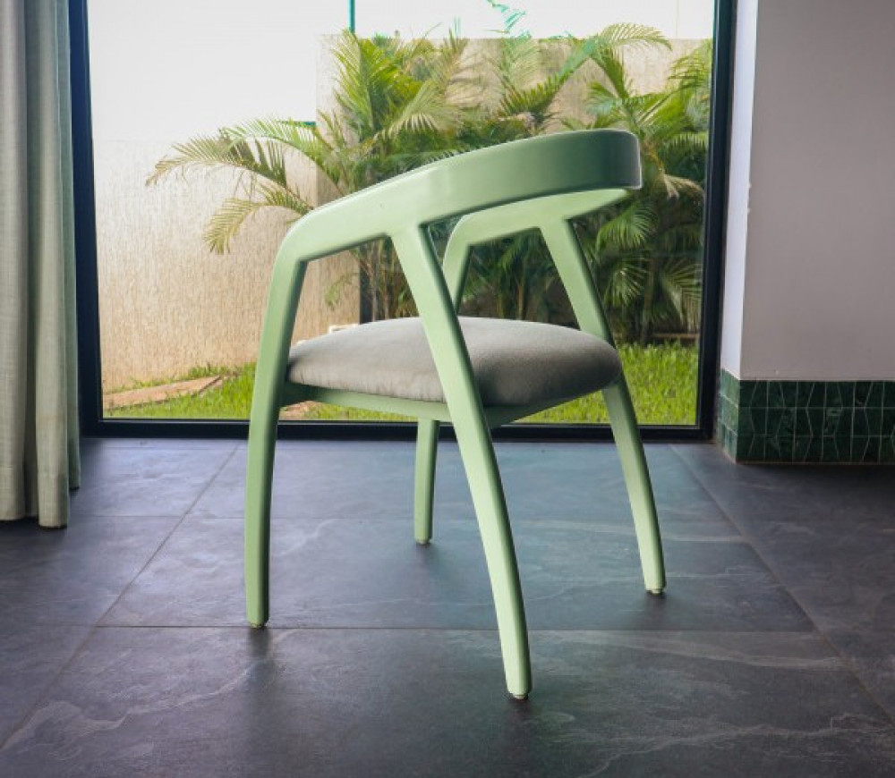 The Lime Chair features a softly curved wooden frame in a muted green finish, offering a light, modern silhouette that brings ease and balance to dining or accent spaces.
